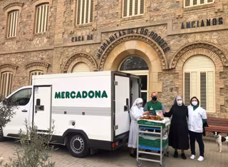 Trabajador de Mercadona y miembros de la Residencia de Ancianos Hermanitas de los Pobres de Cartagena, durante una de las entregas en 2022 - MERCADONA