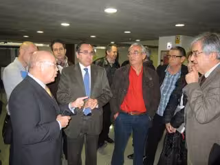 Los sindicatos han acudido puntualmente a la cita, convocada a las 12.30 horas, pero una vez en el lugar se les ha anunciado la suspensión, por lo que alguno de ellos ha mostrado visiblemente su enfado.