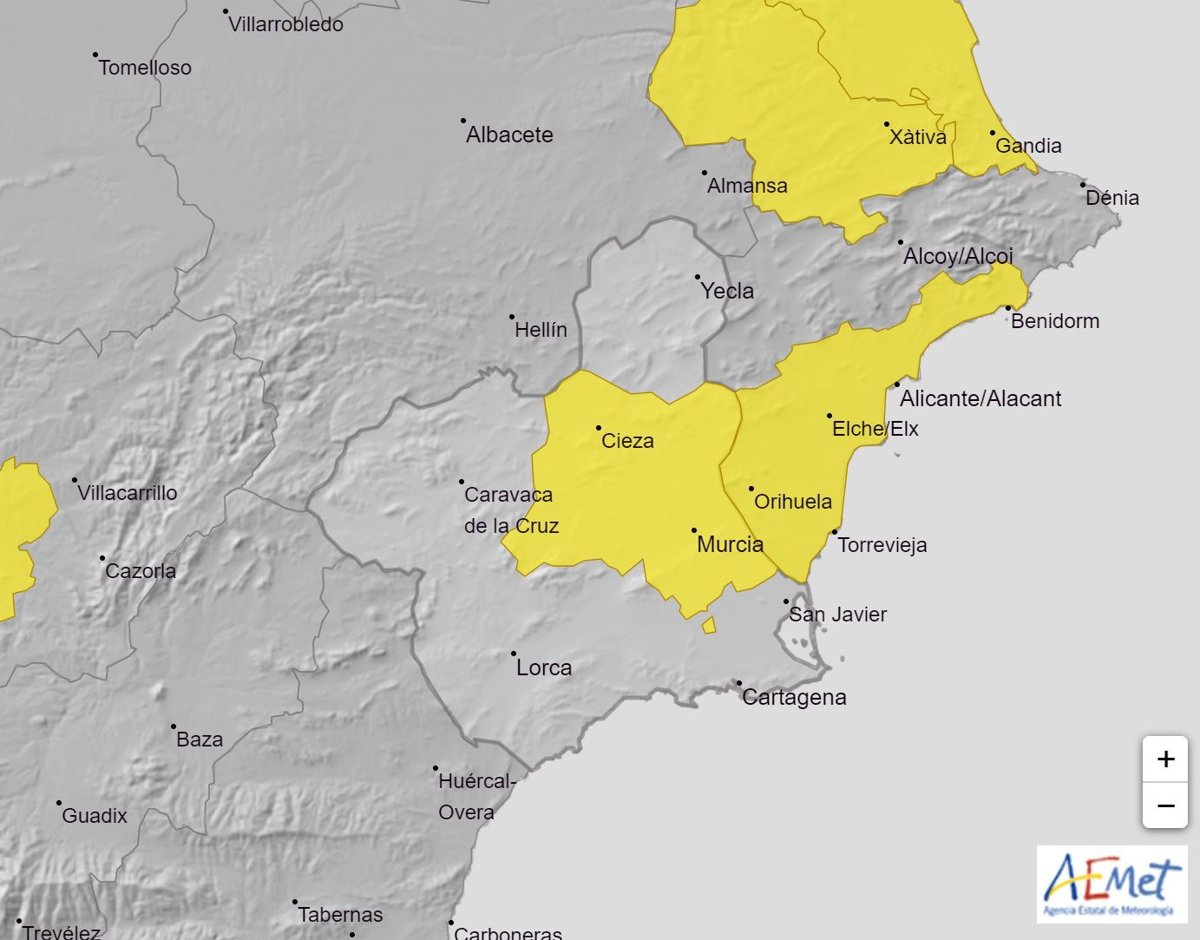 Mapa de avisos activos en la Región de Murcia el miércoles 4 de agosto 2021 - AEMET