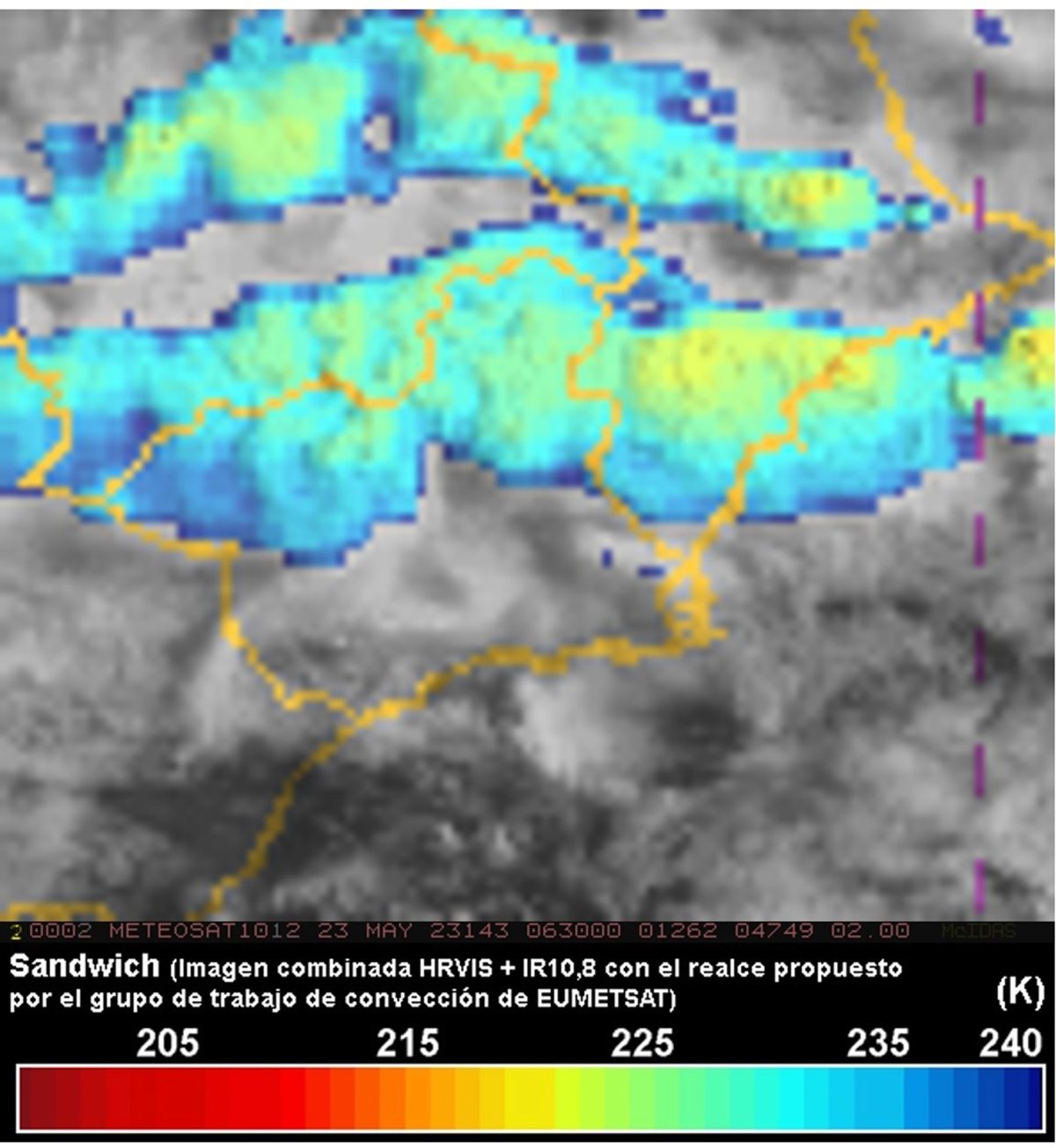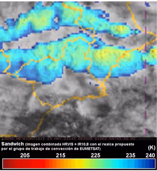 Imagen satelital 'Sandwich' de @eumetsat de las 8.30 horas de este martes en la Región de Murcia - @EUMETSAT