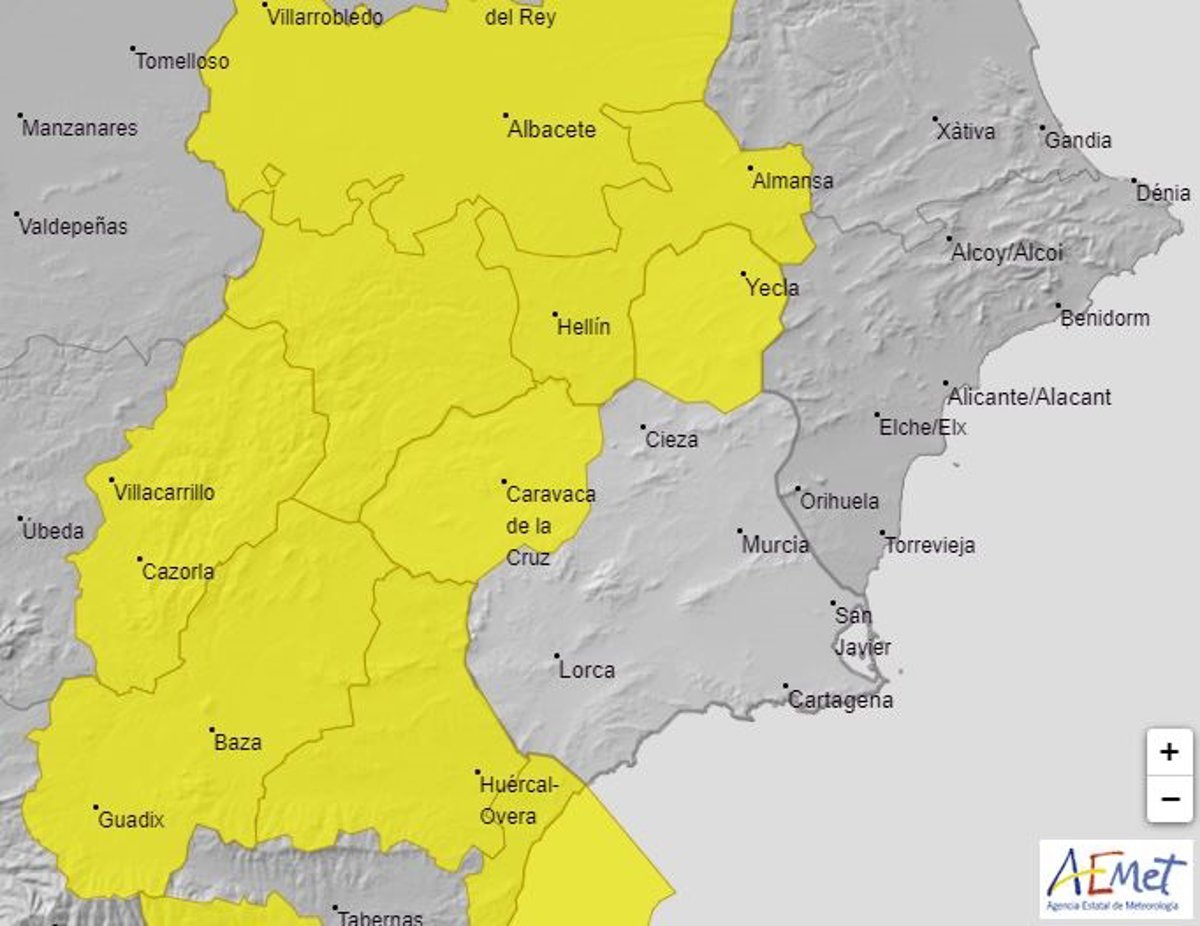 La Agencia Estatal de Meteorología ha ampliado el aviso amarillo por rachas de viento de hasta 70 kilómetros por hora a las comarcas del Altiplano y del Noroeste.