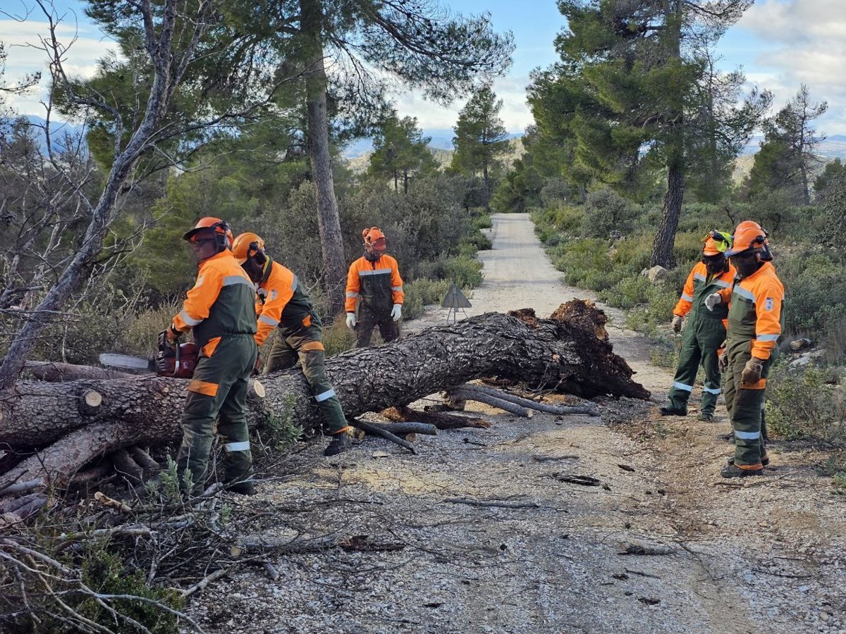 Caída de árboles en la carretera de la Sierra del Burete (Bullas) - UNIDAD DE DEFENSA CONTRA LOS INCENDIOS FORESTALES