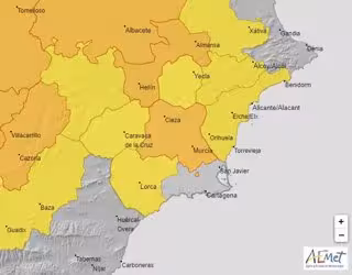 Además, advierte de temperaturas de hasta 38 grados en el Altiplano y 39 en el Noroeste, Valle del Guadalentín, Lorca y Águilas y emite boletín de fenómenos adversos de nivel amarillo para esas zonas.