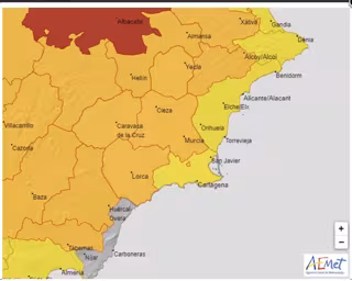 Por último se establece nivel amarillo por altas temperaturas que pueden alcanzar los 37 grados, aunque localmente pueden llegar a los 40, en el Campo de Cartagena y Mazarrón, de 13.00 a 21.00 horas, con una probabilidad de entre el 40 y el 70 por ciento.