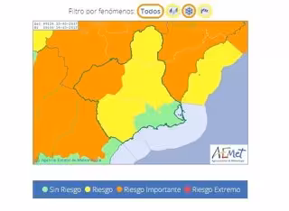 La Agencia Estatal de Meteorología (Aemet) mantiene sus avisos por fenómenos adversos para este lunes en la Región de Murcia y ha añadido el aviso amarillo por lluvias, según informaron fuentes del Centro de Coordinación de Emergencias consultadas por Europa Press.