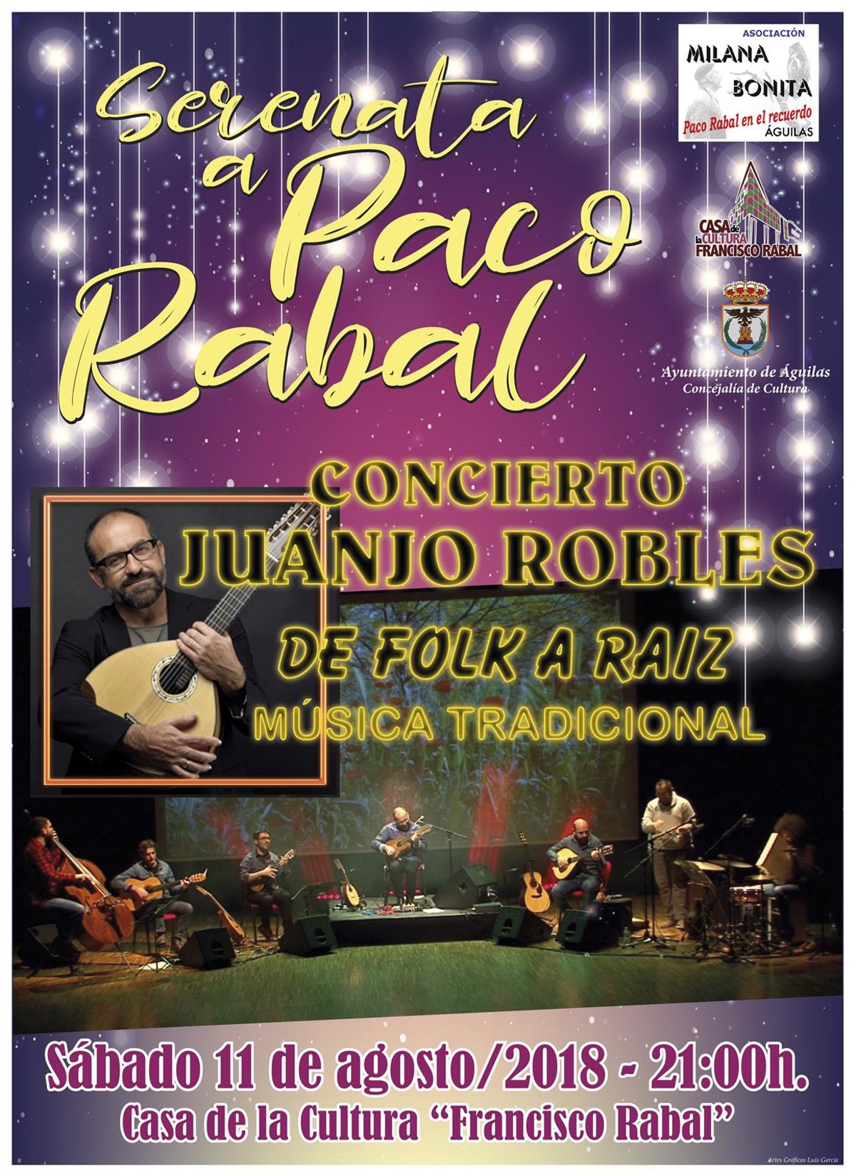 Milana Bonita cierra sus actividades veraniegas homenajeando y recordando al internacional actor aguileño con la ya tradicional Serenata a Paco Rabal, que tendrá lugar el sábado día 11, a las 21.00 horas, en la Casa de la Cultura que lleva su nombre, y con entrada libre hasta completar aforo.