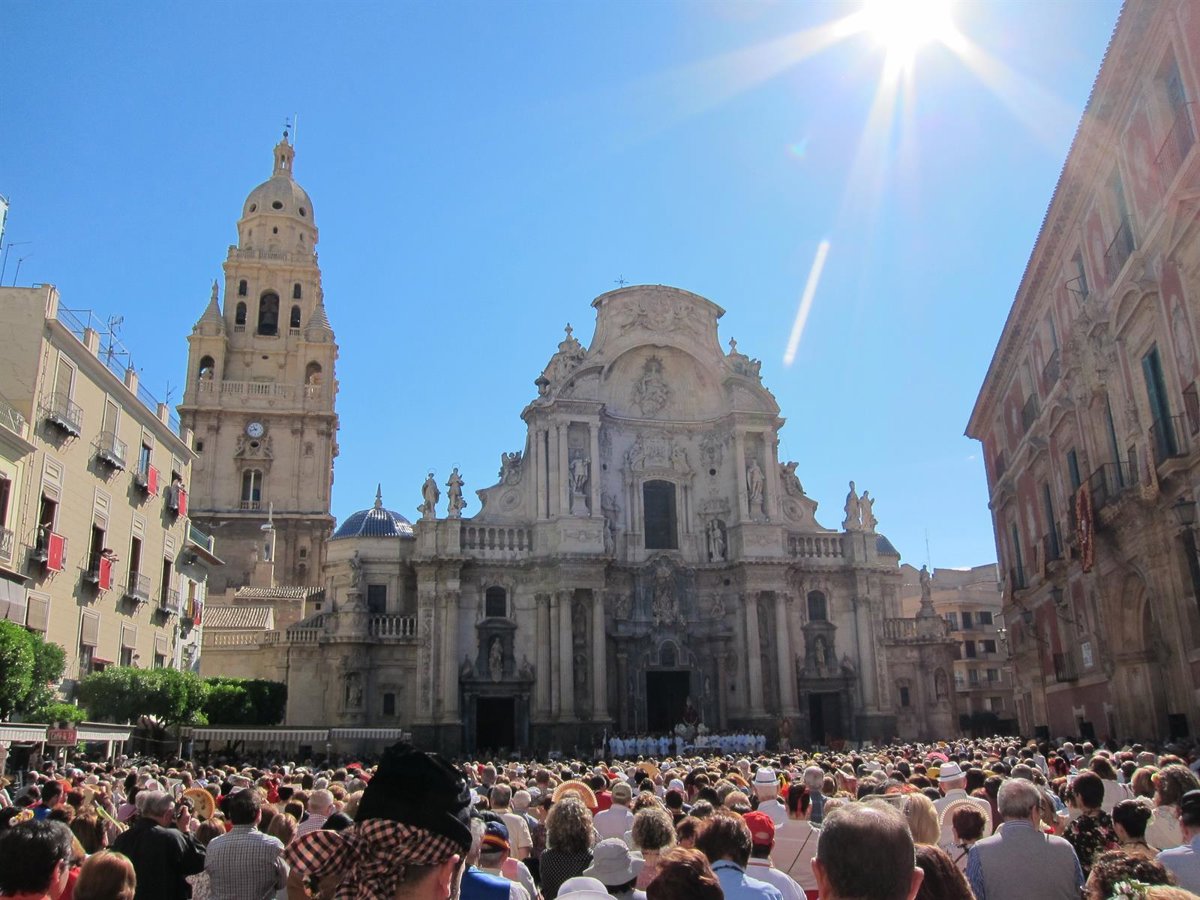 Precediendo a todos ellos, los representantes de las peñas huertanas iniciaron la comitiva. Partiendo de la puerta del Ayuntamiento, todos ellos recorrieron la escasa distancia que les separa de la Catedral para poder manifestar el fervor y cariño hacia la Patrona.