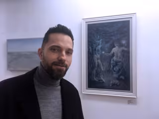 Misha Gálvez Munuera, graduado en Bellas Artes por la Universidad de Murcia, presenta su nueva exposición con un bagaje artístico que abarca tanto las artes plásticas como las artes escénicas. En 'La noche' explora su versatilidad creativa a través de una serie de pinturas que reflejan su profundo compromiso con la expresión artística. Y recurre para ello a los símbolos sobre los que está construida su educación, releyéndolos y reinterpretándolos.