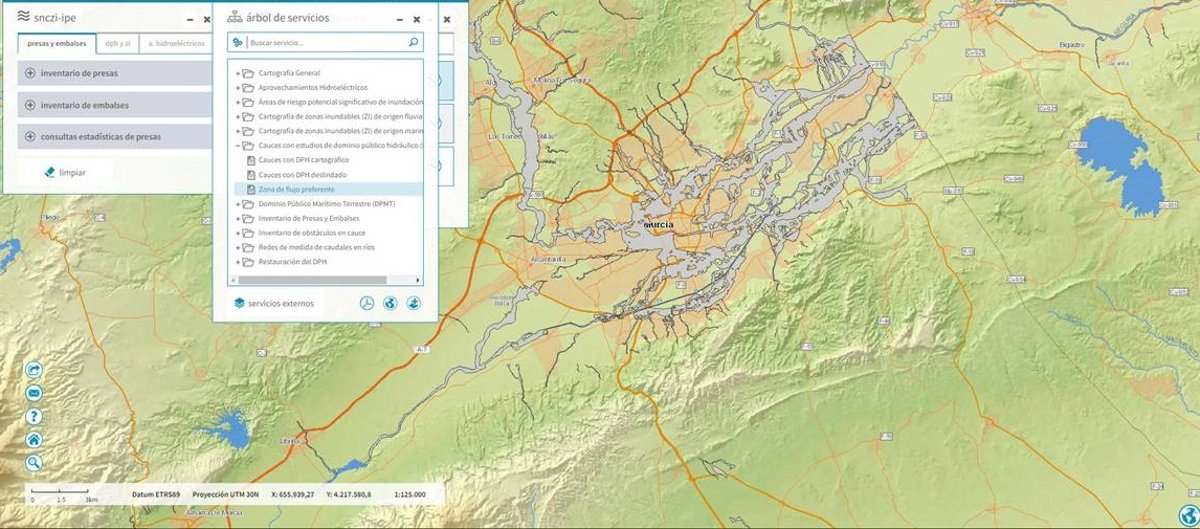 El Ministerio para la Transición Ecológica y el Reto Demográfico (MITECO) ha publicado en el Sistema Nacional de Cartografía de Zonas Inundables las conclusiones de la Confederación Hidrográfica del Segura (CHS) sobre la revisión de la cartografía de Zonas de Flujo Preferente (ZFP) correspondiente a las Áreas de Riesgo Potencial Significativo de Inundación (ARPI) 9, 10, 11, 12, 16, 17 de la Demarcación Hidrográfica del Segura correspondiente a la provincia de Murcia.