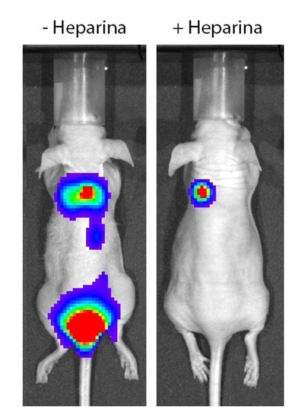 Además vieron que, al igual que en sus efectos anticoagulantes, el su beneficio antitumoral también se potencia por la adición de heparina, ya que ésta es capaz de reducir las metástasis óseas y hepáticas producidas por las células tumorales de colon inyectadas intravenosamente en ratones.