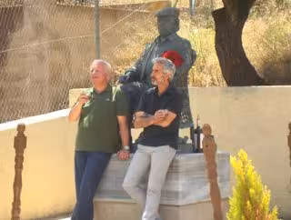 Durante el recorrido, Imanol Arias y Juan Echanove visitaron la Cuesta de Gos, junto al monumento a Paco Rabal, donde depositaron un ramo de flores y brindaron por la memoria del ilustre actor aguileño. La jornada de grabación concluyó en el Hotel Puerto 'Juan Montiel', donde degustaron alguno de los platos de la gastronomía aguileña.