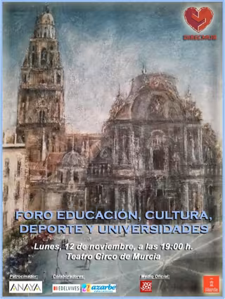El I Foro de Educación, Cultura, Deporte y Universidades Innovaedum se celebra este, en el Teatro Circo de Murcia, de 19.00 a 21.00 horas. El encuentro será presentado por el periodista Luis Alcázar y está patrocinado por el Grupo Anaya, además de la colaboración de Edelvives, Azarbe, el Ayuntamiento de Murcia y La Opinión de Murcia, como medio oficial.