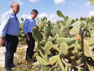 El consejero de Agua, Agricultura, Ganadería y Pesca, Miguel Ángel del Amor, ha visitado este jueves una explotación agrícola de higos chumbos ecológicos en la empresa Bioarchen en Campotéjar (Molina de Segura). Allí ha destacado la importancia de este cultivo como complemento a aquellos de bajas necesidades hídricas, cuya planta sirve de alimento del ganado y su fruto en fresco para consumo humano.
