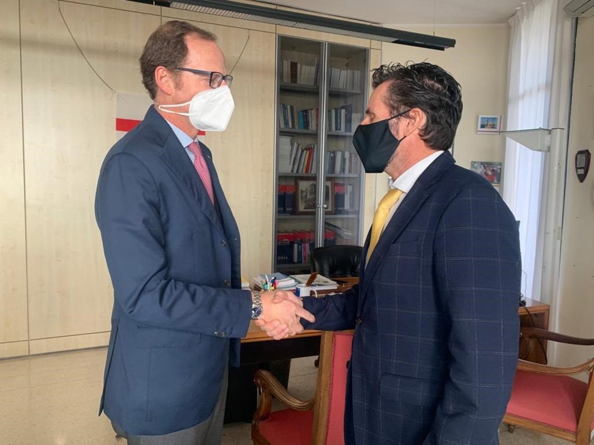 El vicealcalde y concejal de Fomento, Infraestructuras y Contratación, Mario Gómez, se ha reunido con Massimo Nicolo, vicealcalde de la ciudad de Génova, para cerrar de manera oficial la firma del protocolo de hermanamiento entre ambas ciudades.
