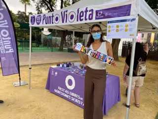 Los 'puntos violeta' están debidamente señalizados con una carpa y una banderola, son accesibles a todas las personas y están atendidos por profesionales en materia de igualdad y prevención de la violencia machista y por personas voluntarias inscritas en las oficinas municipales.