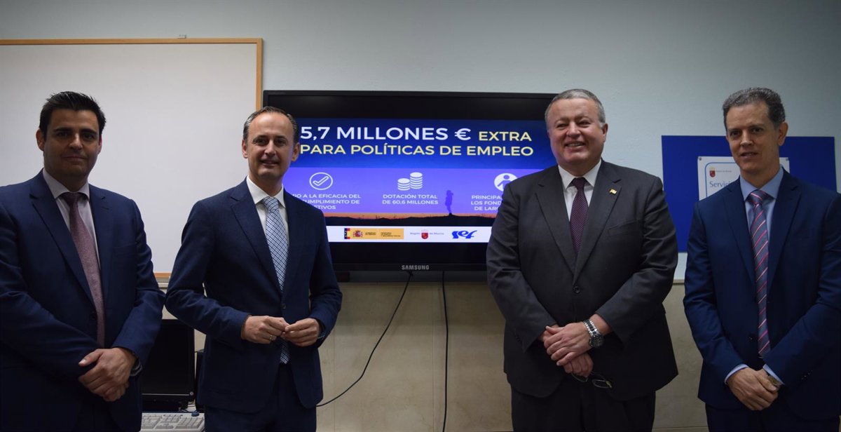 La Región de Murcia ha obtenido 5,7 millones de euros de financiación adicional del Ministerio de Empleo y Seguridad Social para la ejecución de políticas activas de empleo durante el presente año 2018 y que permitirán dar un apoyo adicional a 43.000 personas que buscan empleo.
