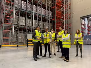 El consejero de Fomento e Infraestructuras, José Ramón Diez de Revenga, acompañado por el CEO de El Mosca, Pedro José Hernández, durante la visita a las nuevas instalaciones de la empresa molinense - CARM