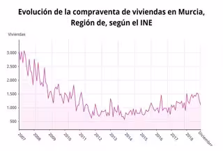 Por otro lado, la compraventa de viviendas aumentó en la Región de Murcia un 22,6 por ciento el pasado mes de diciembre respecto al mismo mes de 2017, hasta un total de 1.102 operaciones, el mayor aumento por comunidades, frente a la media nacional que creció un 3,8 por ciento.