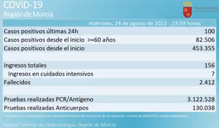 Balance de casos de coronavirus registrados por la Consejería de Salud en la Región de Murcia, a 24 de agosto de 2022 - CARM