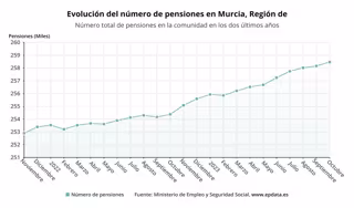 Evolución del número de pensiones en la Región de Murcia - EPDATA