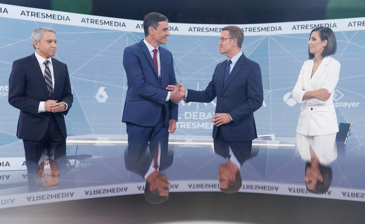 El debate electoral entre Pedro Sánchez y Alberto Núñez Feijóo obtuvo una cuota de pantalla del 56,3% y 222.000 espectadores en la Región de Murcia, el tercer mayor porcentaje por comunidades, solo inferior a los de Galicia (58,2%) y Castilla y León (57,5%).