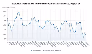 De acuerdo con estos datos, hasta el pasado mes de marzo se registraron 3.239 nacimientos en Murcia: 1.206 en marzo, 997 en febrero y 1.036 en enero.