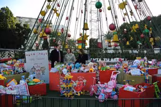 Desde que se instalara este gran árbol, el pasado 4 de diciembre, se habilitó un punto solidario en el que los más pequeños podían entregan los juguetes que ya no usan a cambio de monedas de chocolate del Concejo de Murcia.