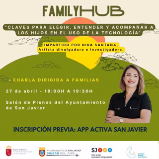 Nira Santana, experta en la relación entre videojuegos, cultura e igualdad, impartirá una charla bajo el título 'Claves para elegir, entender y acompañar a los hijos en el uso de la tecnología', este lunes 27 de abril a las 18.00 horas en el salón de plenos del Ayuntamiento de San Javier dentro del programa Family Hub. La asistencia es libre previa inscripción a través de la aplicación App Activa San Javier.