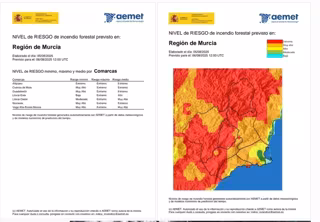 Nivel de riesgo de incendio forestal en la Región de Murcia - AEMET