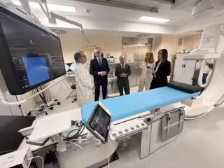 Los profesionales del equipo compartieron con el consejero las posibilidades terapéuticas que se abren con la creación de la nueva Unidad de Electrofisiología y Arritmias, que permite realizar tratamientos intervencionistas complejos y aliviar de este modo la lista de espera de procedimientos de ablación de arritmias, que hasta este momento solo se podían realizar en el hospital Virgen de la Arrixaca y en el Complejo Hospitalario de Cartagena.
