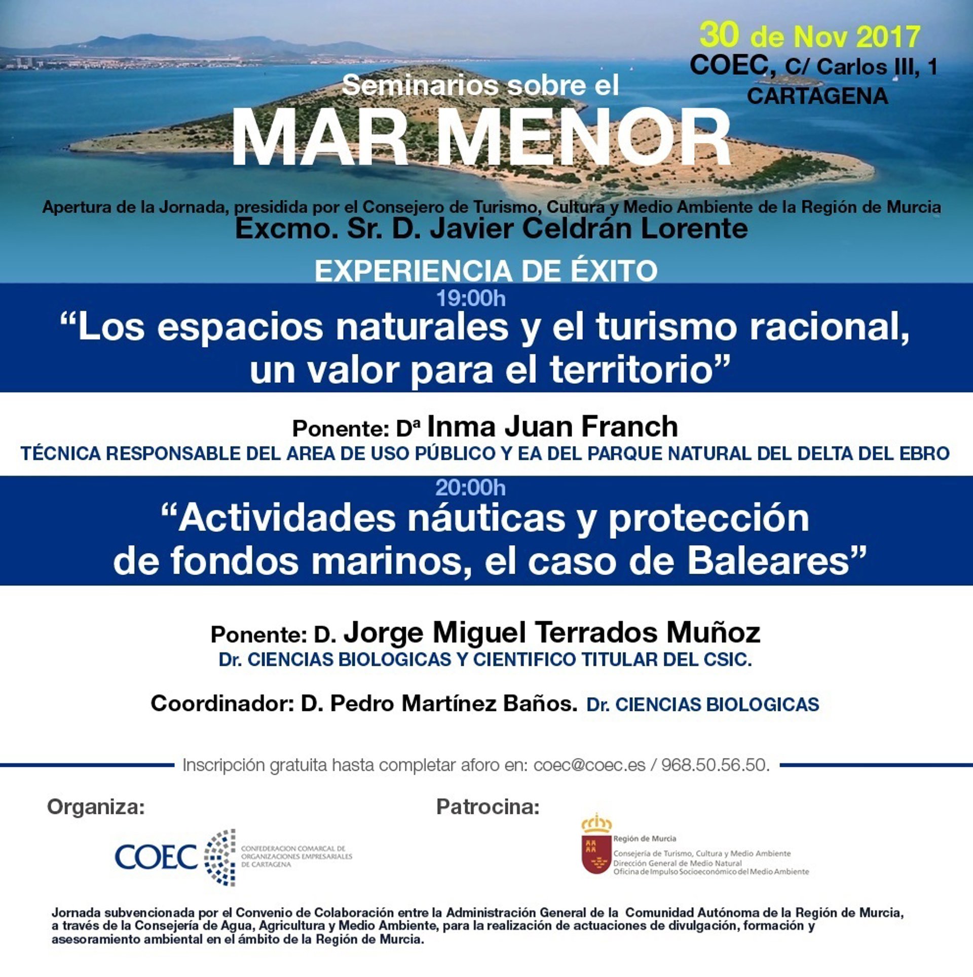 Las experiencias de éxito sobre protección del Delta del Ebro y de los fondos marinos de Baleares centrarán un nuevo seminario sobre el Mar Menor que, impulsado por la Confederación Comarcal de Organizaciones Empresariales de Cartagena, se celebrará este jueves, 30 de noviembre, en la sede de COEC.