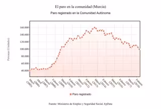 En términos relativos, el descenso del paro en el mes de julio en la Región fue del 0,20 por ciento respecto al mes de junio. El desempleo disminuyó en términos interanuales, de forma que en los últimos 12 meses bajó en Murcia en 3.964 personas, un 3,84 por ciento menos, frente a la caída del 6,02 por ciento nacional.