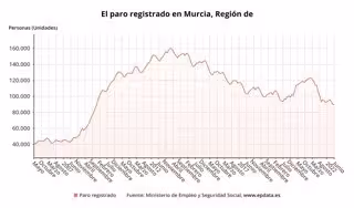 Evolución del paro registrado en la Región de Murcia - EP DATA