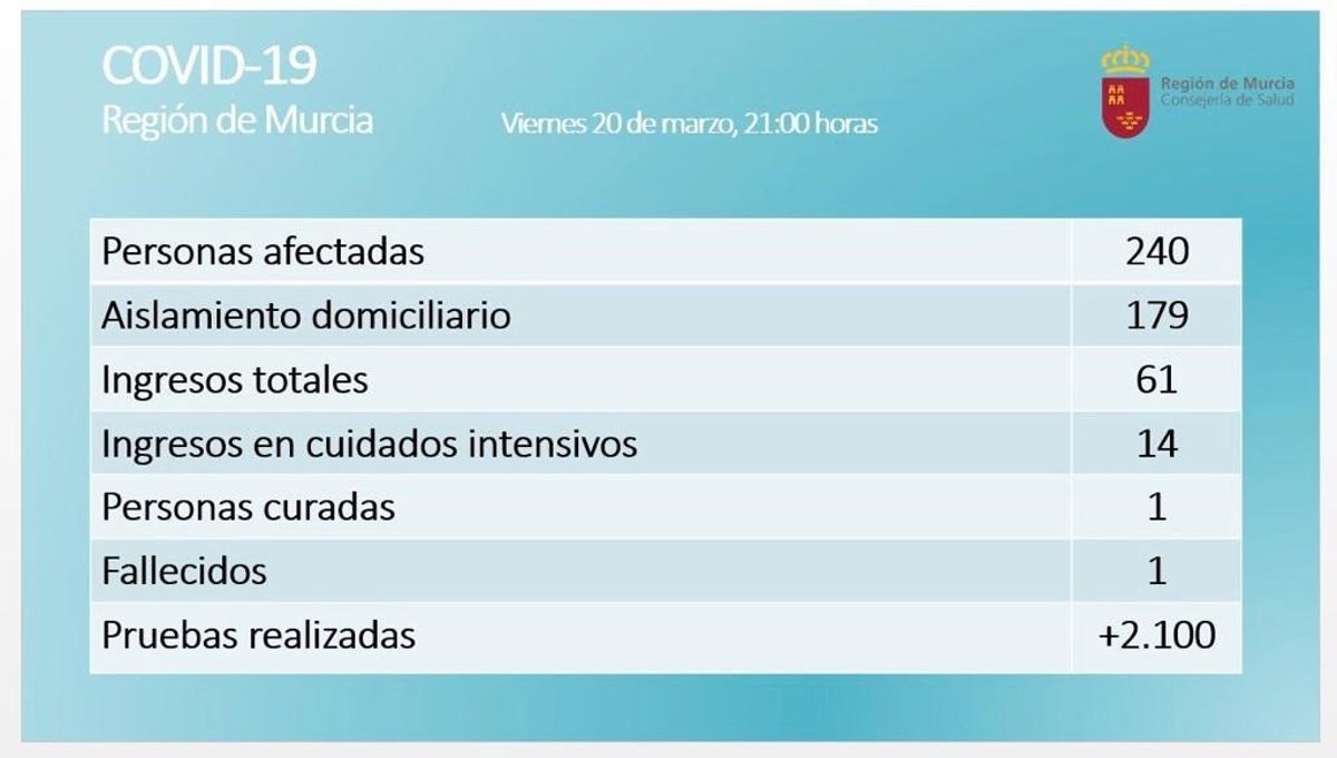 Datos de contagiados facilitado a las 21.00 horas de este viernes - CARM