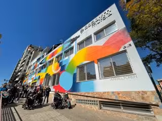 Este mural se encuentra en la calle Infanta Cristina y ha sido realizado gracias a la colaboración de Aspaym, ya que ofrecieron su fachada al Ayuntamiento de Murcia para que se convirtiera en lienzo de un grafiti.