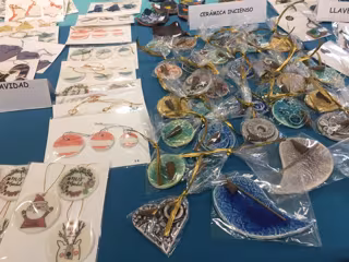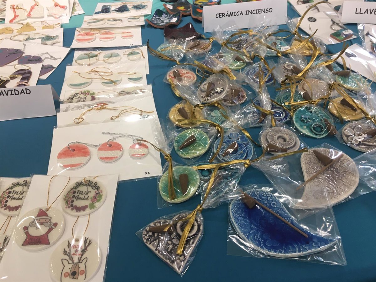 Calendarios, tarjetas de felicitación, tazas, imanes de nevera, chapas, adornos navideños, cuadernos de notas y cuadros, entre otros muchos productos, están a la venta con fines solidarios, ya que la recaudación se destina íntegramente a esos mismos talleres en los que los usuarios dan rienda suelta a su imaginación.