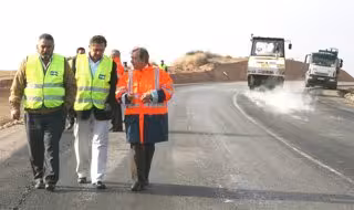 El director general de Carreteras, José Guijarro, acompañado del alcalde de Aledo, Simón Alcaraz, y el edil de Agricultura, Desarrollo Rural, Obras y Servicios de Lorca, Ángel Meca, ha visitado las obras de mejora que la Consejería de Obras Públicas y Ordenación del Territorio lleva a cabo en la RM-C21, que comunica los municipios de Lorca y Aledo, y en las que el Gobierno regional ha invertido 4,5 millones de euros.