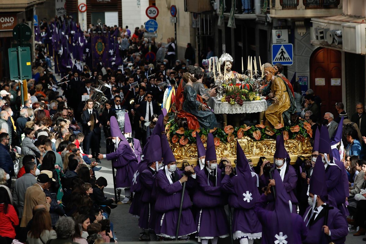 En concreto, el desfile procesional cuenta con nueve pasos: 'La Santa Cena' (1763), 'La Oración en el Huerto' (1754), 'El Prendimiento' (1763), 'Los Azotes' (1777), 'La Verónica' (1755), 'La Caída' (1752), 'Nuestro Padre Jesús Nazareno' (1600), 'San Juan' (1756) y 'La Dolorosa' (1755). Todas las obras son de Francisco Salzillo, excepto 'Nuestro Padre Jesús Nazareno', que es anónima.