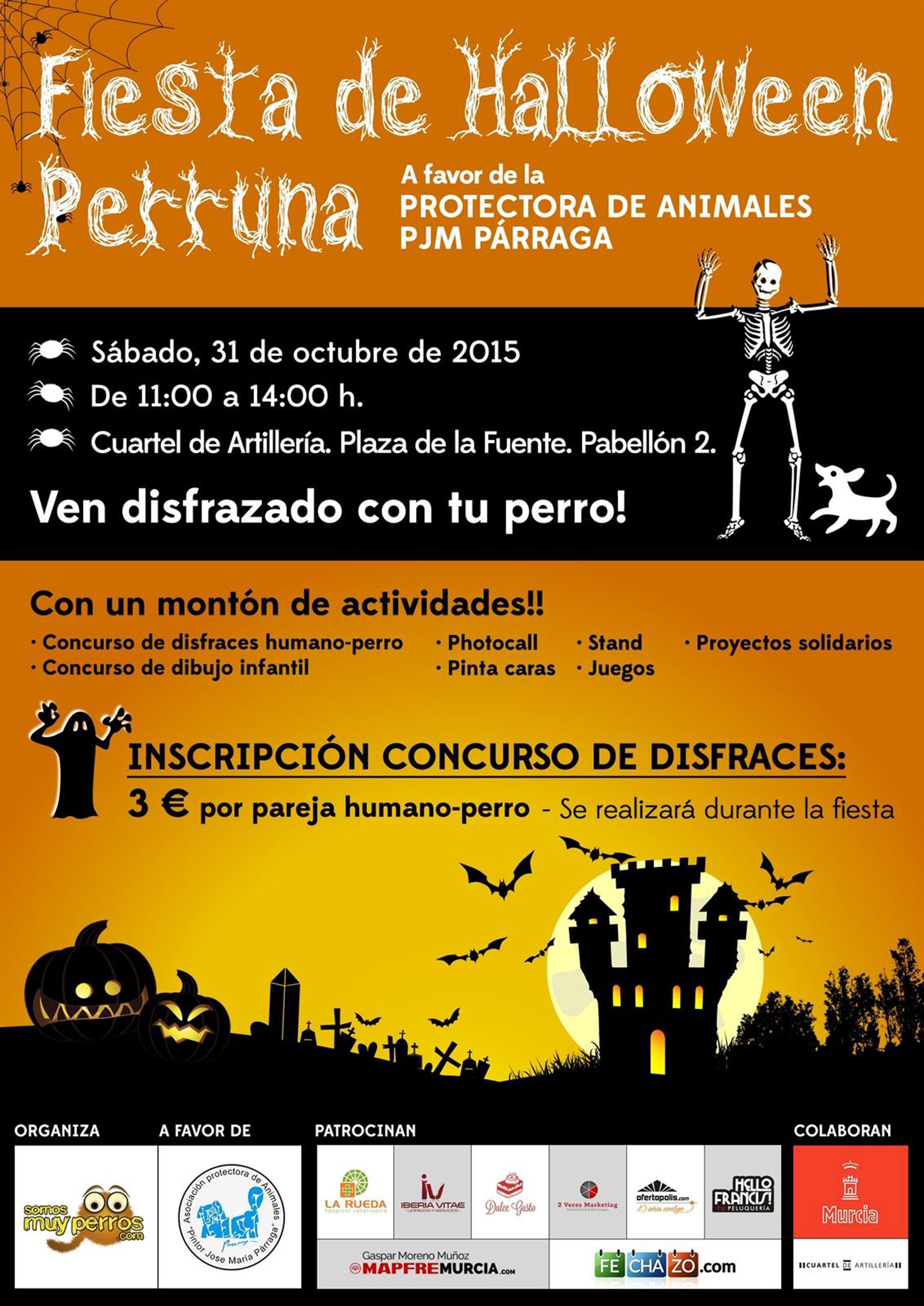 La Plataforma Somosmuyperros ha organizado este sábado una fiesta 'terrorífica' de Halloween para adultos, niños y perros, con carácter solidario, a favor de la Protectora de Animales Pintor José María Párraga de Murcia.