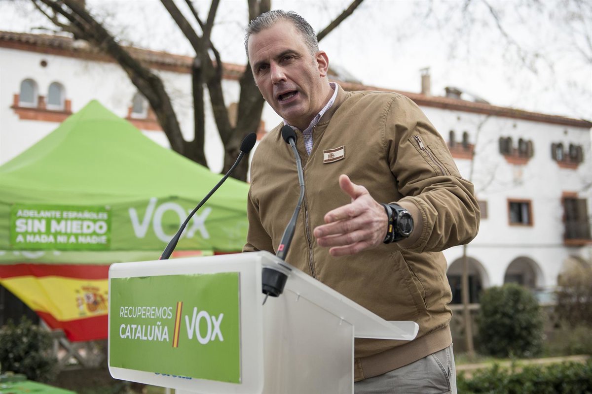 Archivo - El secretario general de Vox y portavoz del partido en el Ayuntamiento de Madrid, Javier Ortega Smith, interviene en un mitin del partido el último día de la campaña electoral del 14-F, en Girona, Cataluña - Glria Sánchez - Europa Press - Archivo
