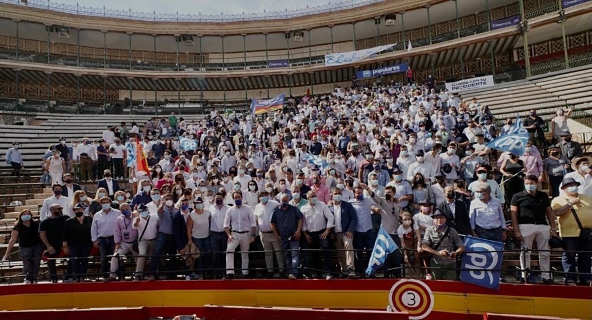 Hasta la capital valenciana han llegado cerca de una veintena de autobuses, que han partido desde distintos puntos de la Región, para darse encuentro en la Plaza de Toros, en la que el presidente del PP, Pablo Casado, con el respaldo de sus barones autonómicos, ha clausurado la convención.