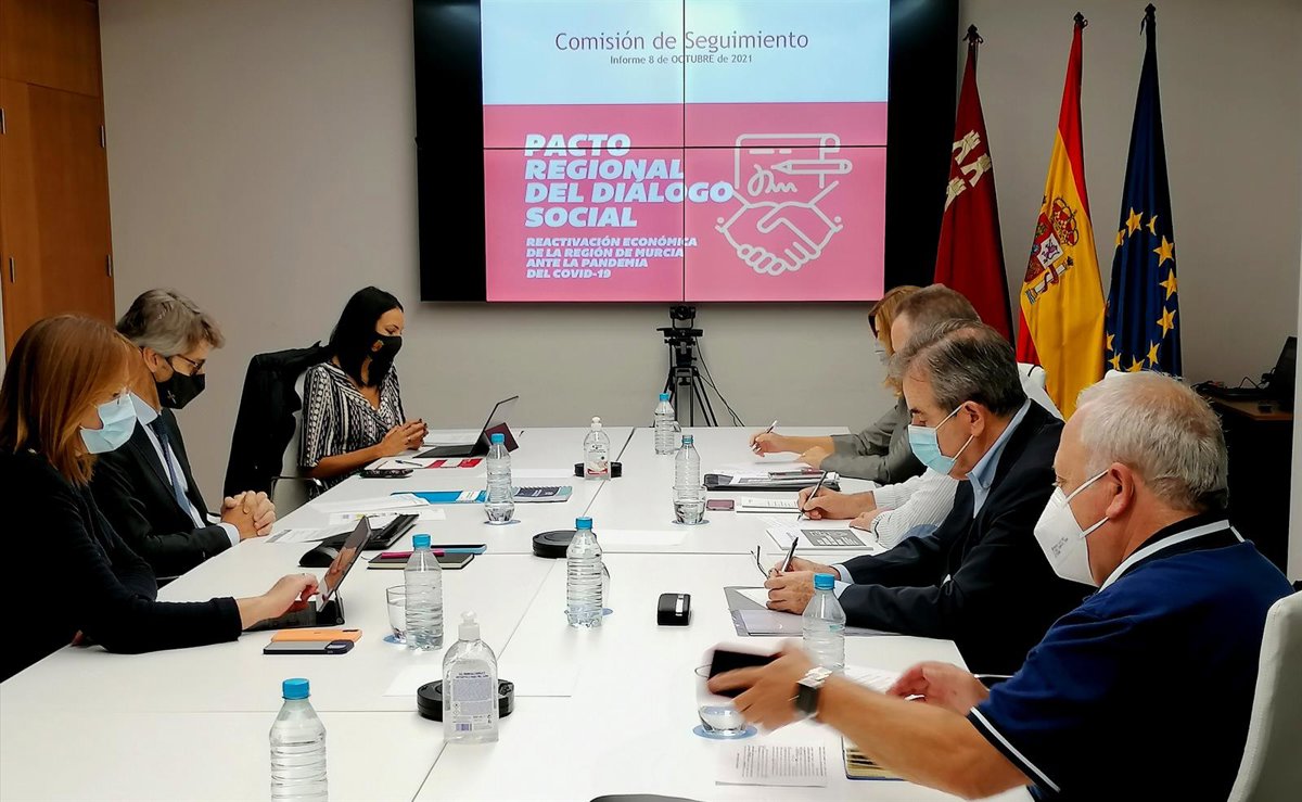 Este es uno de los datos que se analizaron hoy en la reunión de la comisión de seguimiento de este acuerdo alcanzado por el Gobierno regional, los sindicatos Unión General de Trabajadores (UGT) y Comisiones Obreras (CCOO) y la patronal Confederación de Organizaciones Empresariales de la Región de Murcia (Croem) y que recoge un total de 40 medidas articuladas en 10 ejes estratégicos.