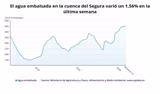 El agua embalsada en la cuenca del Segura varió un 1,56?% en la última semana - EUROPA PRESS