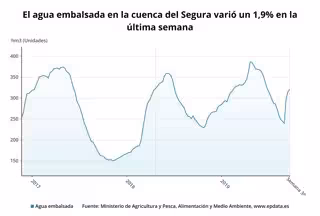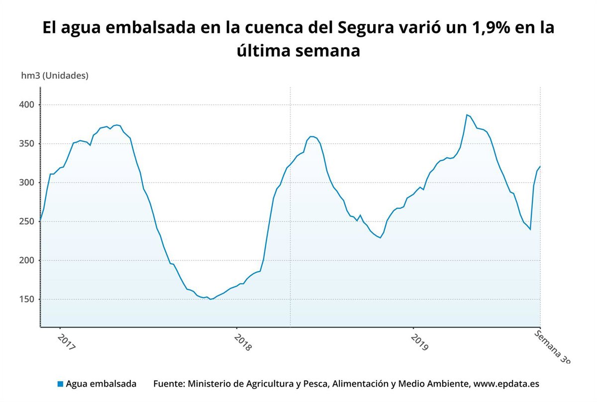 El agua embalsada en la cuenca del Segura varió un 1,9?% en la última semana - EPDATA