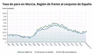 Gráfica que muestra la evolución de la tasa de paro en la Región de Murcia - EUROPA PRESS