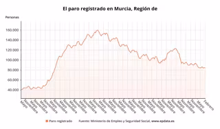 El paro registrado en las oficinas de los servicios públicos de empleo bajó en 418 personas en febrero en la Región de Murcia en relación al mes anterior (-0,49%), hasta los 84.547 desempleados, según datos publicados por el Ministerio de Trabajo y Economía Social.