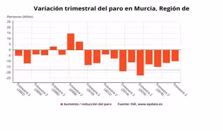 El paro descendió en 9.900 personas en la Región de Murcia en el segundo trimestre de 2020, un 8,31 por ciento respecto al trimestre anterior, con lo que el número total de desempleados se situó en 109.300 personas y la tasa de paro se situó en 15,62 por ciento, según los datos de la Encuesta de Población Activa (EPA) hecha pública este martes por el Instituto Nacional de Estadística (INE).