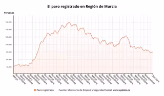 Desde el inicio de la serie histórica comparable, en 1996, el paro ha subido en octubre la mayoría de veces en la Región de Murcia (20 veces), mientras que ha bajado en ocho ocasiones, siendo el repunte del último mes la menor subida desde 2007.