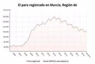 En términos relativos, el incremento del paro en el mes de octubre en la Región fue del 1,34 por ciento respecto al mes de septiembre. El desempleo disminuyó en términos interanuales, de forma que en los últimos 12 meses bajó en Murcia en 5.575 personas, un 5,07 por ciento menos, frente a la caída del 6,12 por ciento nacional.