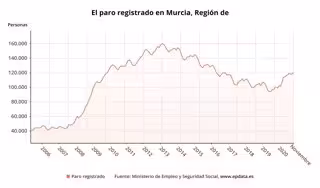 El número de desempleados registrados en las oficinas del Instituto Nacional de Empleo (Inem) en la Región de Murcia al término del mes de noviembre se situó en 120.608, lo que supone un aumento de 2.781 personas respecto a octubre, según datos difundidos este miércoles por el Ministerio de Trabajo y Economía Social.